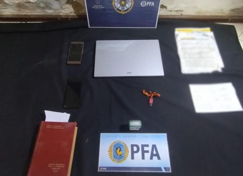 Atento a ello, los servidores públicos montaron un discreto operativo en las inmediaciones de la vivienda ubicada sobre la calle Payró, materializando su detención y procediendo al secuestro de dos teléfonos celulares, una computadora, un pendrive, un sello y documentación de relevancia.